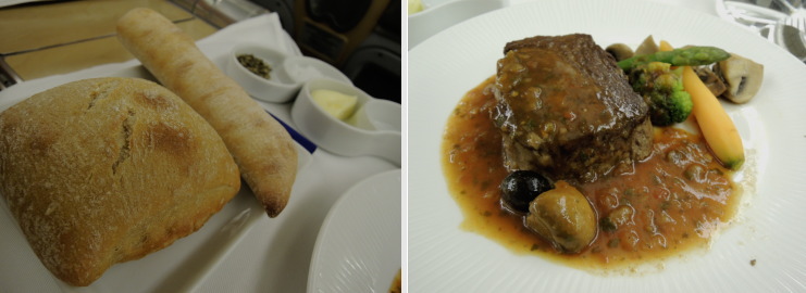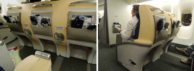 | 日本への帰国便はANAのビジネスクラスです。エールフランスより足回り等が広く感じました。でも、フルフラット時のシートにかなり傾斜があって、寝心地はエールフランスほど良くはありませんでした。 |