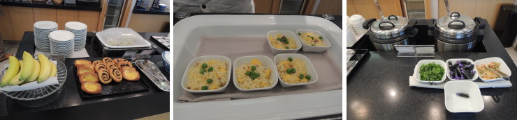 | 無料の軽食が用意されていました。バナナ、デニッシュペストリー、炒飯、お粥などなど。 |