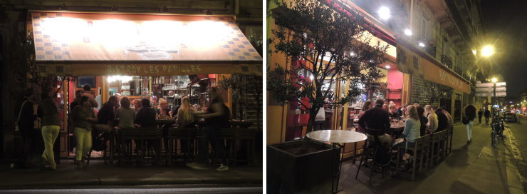 | フランス初日のディナーは、ビストロ「LES PAPILLES(レ・パピーユ)」で!平日21時30分からの予約でしたが、お客さんがいっぱい。人気のお店のようですね〜。予約必須です。 |