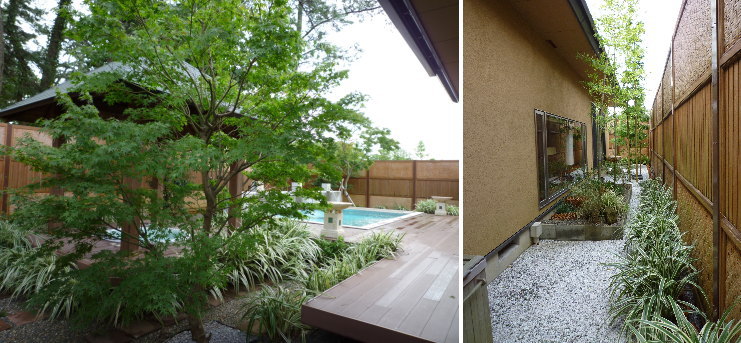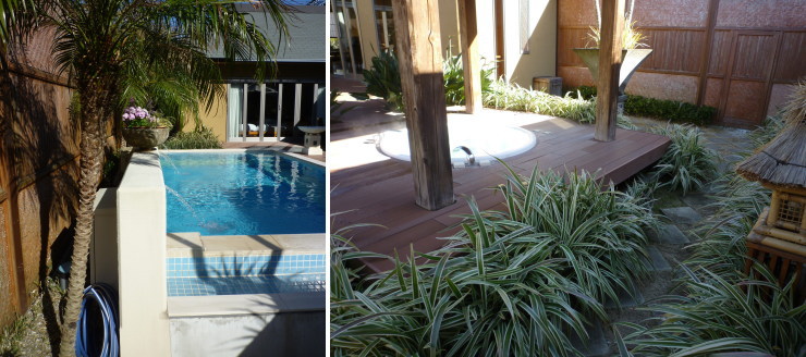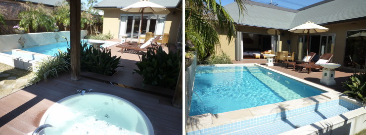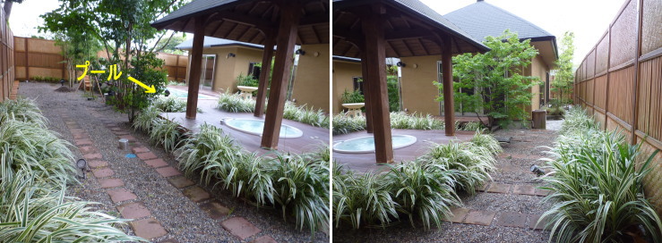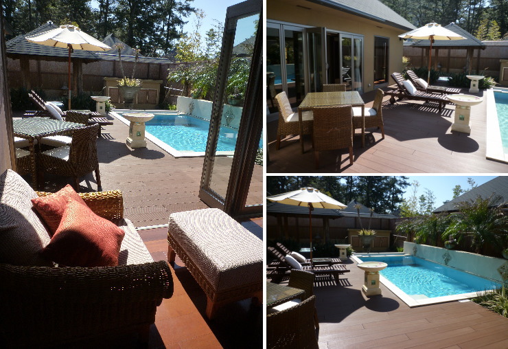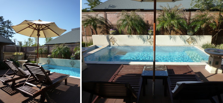 | ちなみに、下記は「毬」の写真です。プールの後ろやヴィラの周りに2〜3mの余裕があり、坪庭などもありました。絶対「毬」の方が広いと思うな〜 |