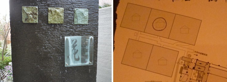 | 本館植栽側の2室がスタイリッシュ&エレガントの「毬」と「凛」、反対の道路側に和モダンの「藍」と「和」に挟まれて、アジアンリゾートの「花」があります。 |