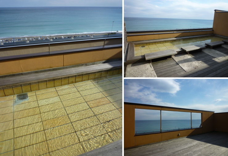 | 鴨川館の屋上には、雄大な太平洋を見渡す事のできる足湯コーナーがあります。広々していて、こちらも気持ち良かった〜 |