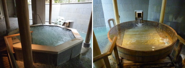 | 樽風呂(写真右)が一番気持ち良かったかな〜。大浴場が閉まる直前に行ったので誰も居なかったから1人でゆったり入れましたけど、誰か居たら入りにくい大きさではあります。 |