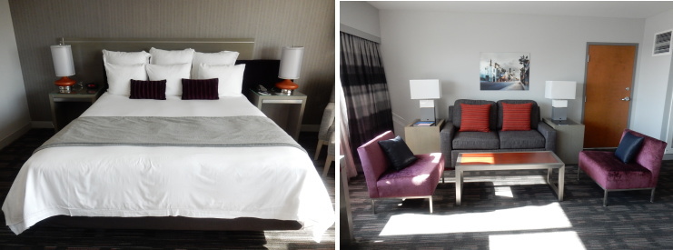 | ベッドはエクストララージダブルベッドとのこと。リビングエリアもゆったり。 |