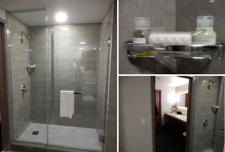 | コンクリート打ちっぱなしのようなシャワーブース。バスタブは無し。置くスペースは十分にありそうですが(笑)。シャワーの水圧が弱くて、これはかなりのストレスでした! |