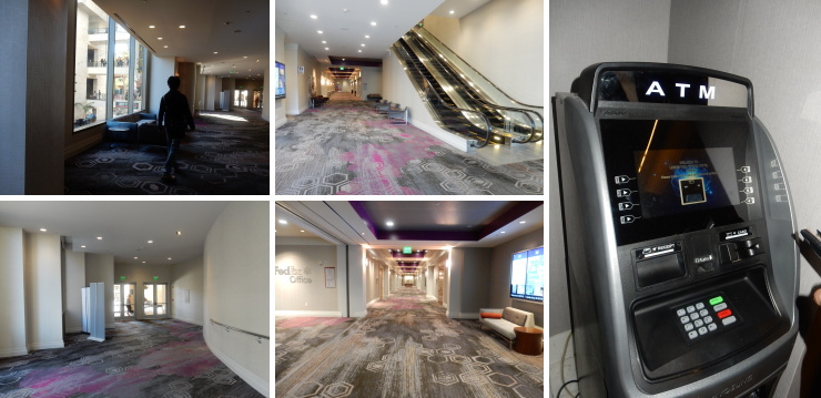 | ホテルの設備を少々。フロント近くにATM、3階にはFedEXがあり、ホテルから荷物を送れるので便利でした。 |