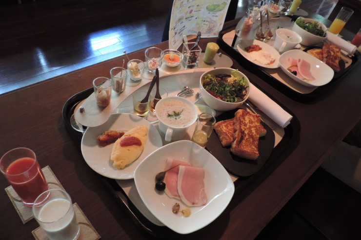 | 朝食も同じく「リュミエール・アルカナイズ」にて。洋食でお願いしました。1人プラス2200円で、ルームサービスで和食を楽しむこともできるそうです。 |