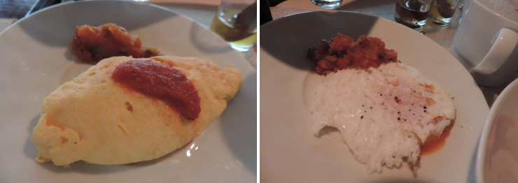 | また、卵料理も通常メニューの温泉卵から、好きな調理法に変えることができます。私はオムレツに、夫はオーバーイージーに。 |