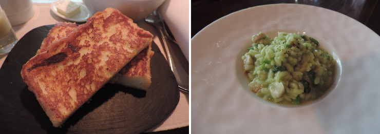 | リピーター特典かもしれませんが、パンの盛合わせはフレンチトーストかリゾットに変更することができます。夫は宿の手違いで、フレンチトーストとリゾットの両方を食べることになってしまいました(笑) |