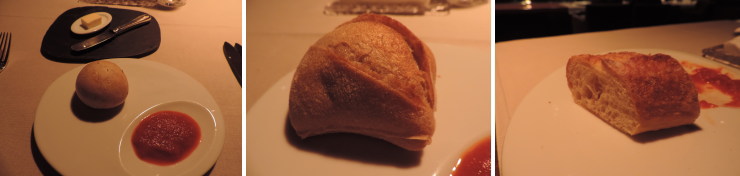 | パンはおかわりする度に違う種類がサーブされました。パンにはトマトソースが付いてきますが、バターもリクエストできます。 |