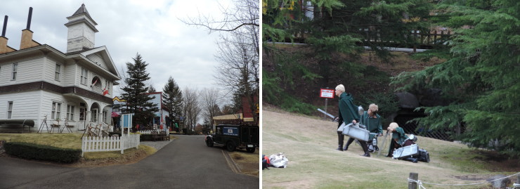 | 園内を走る機関車に乗ってカナダ村へ。 |