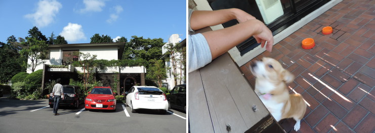 | 以前から気になっていた箱根のオーベルジュへ。外観はまるで一軒家のよう。愛想が良すぎてブレブレのワンコが熱烈歓迎のお出迎え♪ |