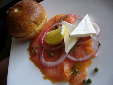| 3日目の朝食 昨晩のディナーがアレだったので、胃がムカムカの私は グリーンサラダとフルーツとパンだけで・・・(´;ω;`) 胃が丈夫な彼は、オムレツとサーモンとクリームチーズの ベーグル、ハムやらソーセージやらベーコンやら ハッシュドポテトやら、またしても、どんだけぇ〜な量を 朝からガッツリ食べておりました。 |