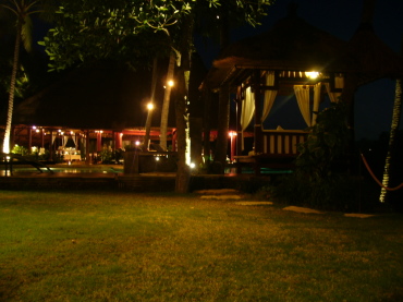 | もう、ここからは吐き気を我慢しながら耐えるのみ。 こんなに辛いディナーは初めてでした(涙) デザートも死ぬほどまずくて失神寸前。゚(゚´Д`゚)゜。ウァァァン この夜以来、独特の香辛料と脂の匂いが消えず、 胃がムカムカしっぱなしでした・・・ 2日目にして、あんなに楽しみにしてたバリごはんに ギブアップ・・・(無念) |