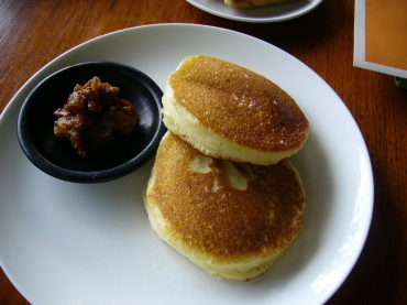 | バターミルクパンケーキ(約1700円) | マンゴーとパパイヤの盛り合わせ(約1000円) チキンソーセージ(約760円) |