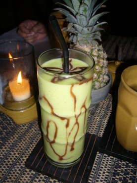 | アボカドジュース(30000ルピア)に初挑戦! アボカドは大好きですが、コレは生臭いというか・・・ もう飲むことはあるまい(笑) |