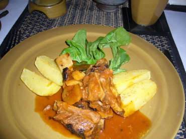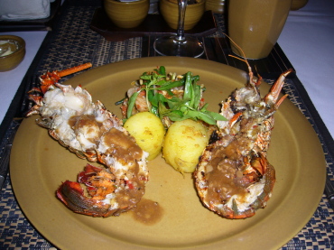 | 彼のメインはロブスターグリル(167000ルピア) | 私はテンダーポーク・スペアリブ(98000ルピア) 味はそのまんまケチャップ味! 不味くはないですが、なんとも安っぽい味・・・^^; |