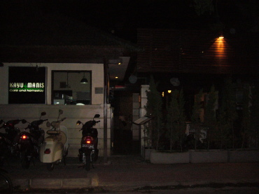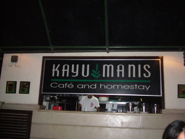 | 5日目のディナー サヌールにある「カユマニス カフェ&ホームステイ」へ。 小さなレストランですが、料理がおしゃれ〜 値段は忘れてしまいましたが、確か「この内容でこのお値段なら 大満足」だった記憶があります。 |