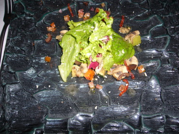 | サラダもメインも盛り付けが凝っています。私がオーダーしたチキンはちょっと大味でした。今夜もお腹いっぱいー | |