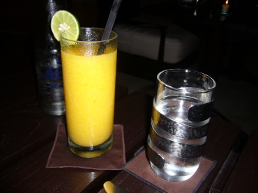 | ワインを1本飲んで、トータルで約35,000円。 さすが、お高いですね〜〜 料理の味は微妙でしたが、あの超高級で贅沢な時間を 過ごすことに、これだけ出す価値はあったかも。 レストランの隣のバーも素敵だったので、ちょっと寄り道。 私はパパイア・ジュースをオーダー(こればっかり)。 |