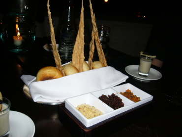 | パンの盛り合わせも只者じゃないたたずまい(笑) 料理への期待が高まります。 |