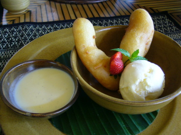 おやつにピサンゴレン(55660ルピア)をオーダー。 ウブドのカフェで食べた方が美味しかったかな。 |