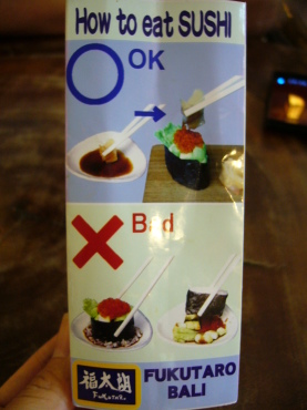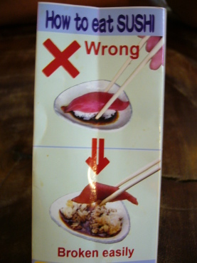 | お寿司の食べ方注意書きが面白かったので、思わずパチリ(笑) | ||