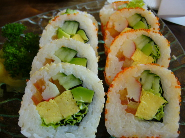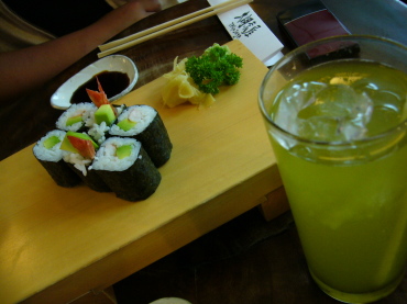 | 海老きゅーとカリフォルニアロール(日本食?)を注文。 | グリーンティーをすすりながら、「やっぱこれだよねぇ」なんて つぶやいちゃうしまつで・・・・(笑) |