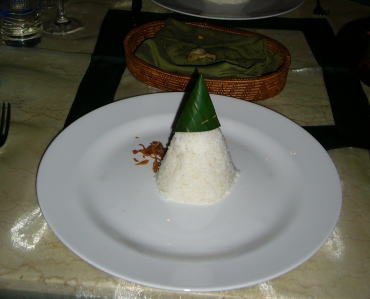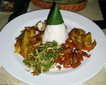 | 7日目のディナーは、バリ・ハイアットホテルの中華レストラン「テラガ・ナガ」へ行きました。(写真撮り忘れた) 高級な雰囲気でしたが、無愛想な接客(たまたま私達の席を担当した中国人のウエイターだけかもしれません)、 それほど美味しくない料理、と、値段に見合う内容ではありませんでした。残念。 |