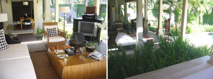 | ダイニングの横の小さな池を渡ると、半屋外のリビングです。 | ||