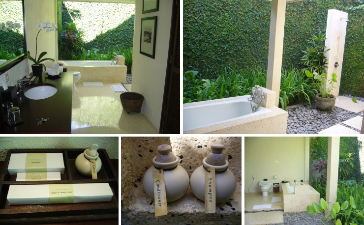| メインベッドルームのバスルームです。半屋外で緑に囲まれ、こちらも贅沢な広さがあります。 | |