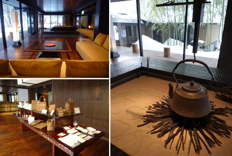 | 囲炉裏の砂にハートがいっぱい(*´ω`*)。バレンタインデーだからでしょうか。ロビーの先にはギャラリーショップもあります。 |