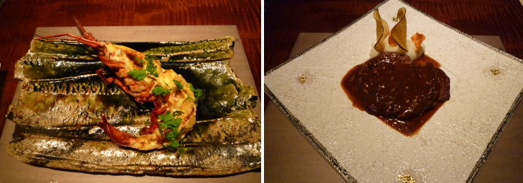 | これじゃメインも期待できない・・・とは予想していましたが、期待通り(?)の残念なメインが2品。「伊勢海老のグラタン」と「仙台牛フィレステーキトリュフソース」。伊勢海老はよくある安っぽいグラタンソースの味。仙台牛の方は笑っちゃうくらいひどい。トリュフソースがハインツのデミグラスソース缶を水で薄めた味!!おかげでせっかくの仙台牛の味が台無しに。もうここまでくると呆れて2人とも大爆笑でした。 |