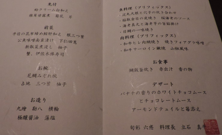 | メニューは和食では珍しいプリフィックスのコース。 |