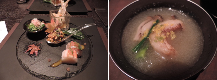 | 夕食はダイニング「旬彩 六感」で。17時30分または19時45分からの2部制で、後半でお願いしました。 |
