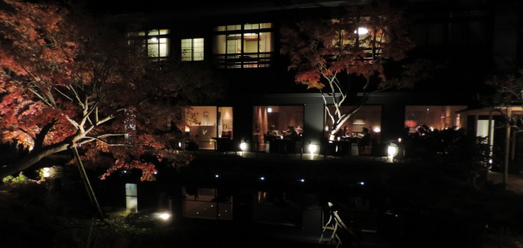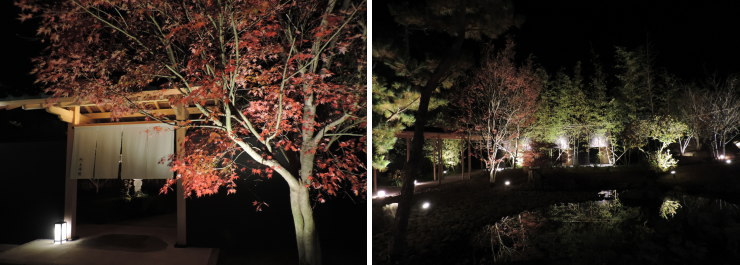 | ライトアップされた夜の庭園も素敵!池に光が映って幻想的な美しさでした。 |