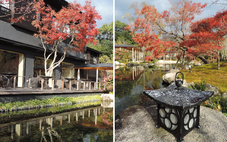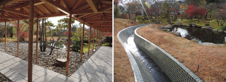 | 池を中心とした美しい回遊式庭園。水場があると心が安らぎます。 |