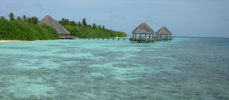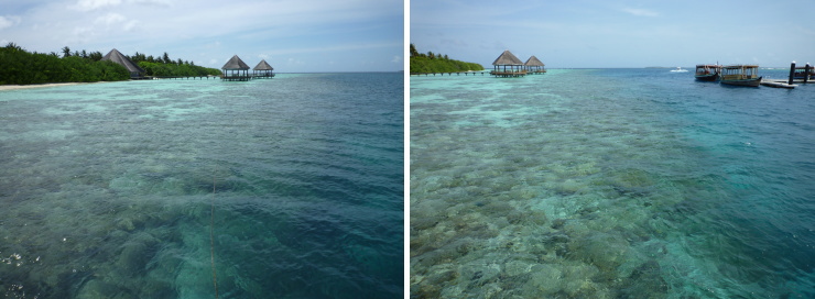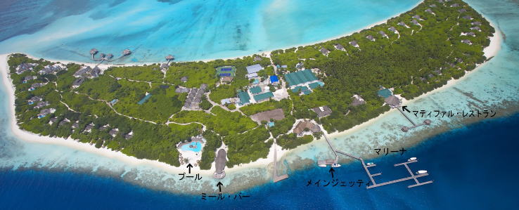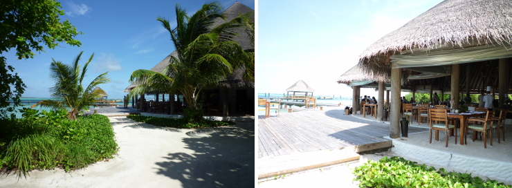 | マリーナから見たマティファルレストラン。珊瑚の海が美しい〜 |