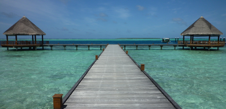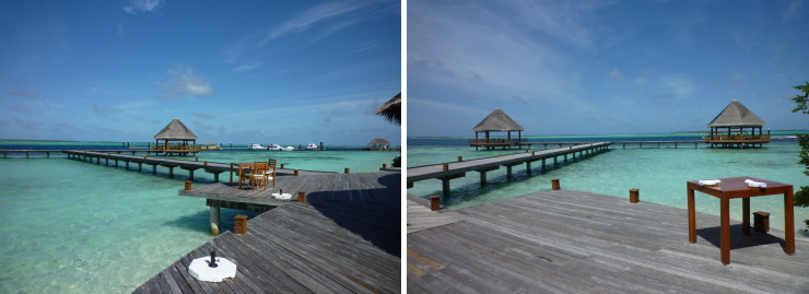 | レストランから海に伸びたジェッティの左右には水上ダイニングがあります。ここでスペシャルディナーなどを頂けるようです。 |