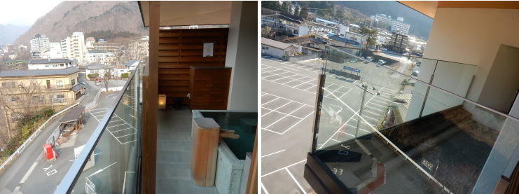 | 一般客室との一番の違いは、この最上階からの眺望と、1.5倍の広さ(10畳)があるテラスでしょうか。柵がガラス張りなので明るく開放感があります。 |