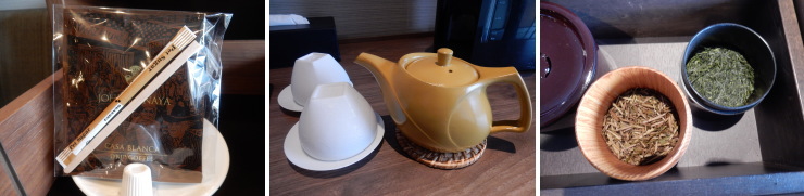 | 「ジョン・カナヤ」オリジナルのドリップコーヒー、お茶は緑茶とほうじ茶。 |
