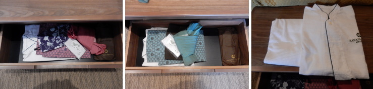 | 部屋着はそれぞれ浴衣が1着と、ワッフル生地のパジャマ。 |
