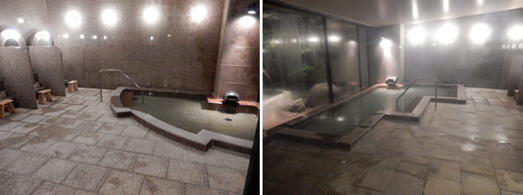 | 2ヵ所に分かれた内湯。どちらも大理石の浴槽です。写真撮り忘れましたが、ミストタイプの低温サウナもありました。 |