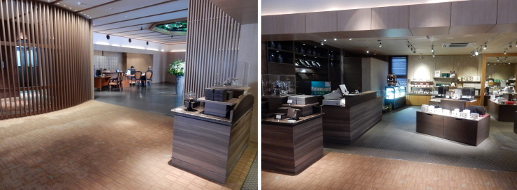 | ラウンジの入り口にはショコラトリー「ジョン・カナヤ」。ボンボンショコラは5ヶで2160円。めっちゃ高い。 |