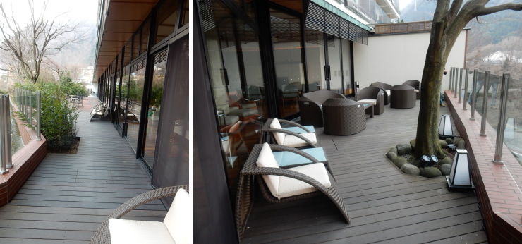 | ラウンジはテラス席もありました。レストランのテラス席へと続いています。 |