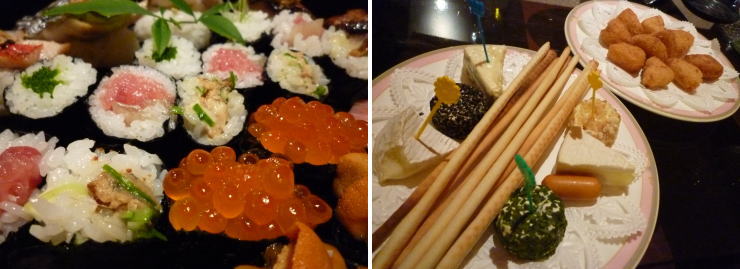 | 右の写真は、食後に注文したラ・松廬のチーズ盛り合わせ(1800円)とカマンベールフライ(1800円)です。ラ・松廬のルームサービスメニューはどれも高かったなぁ〜 |