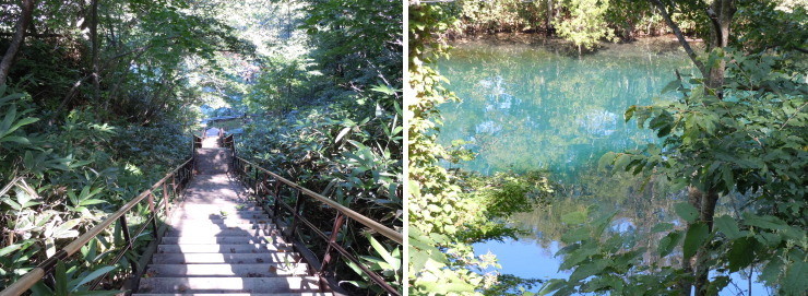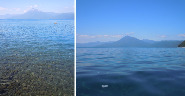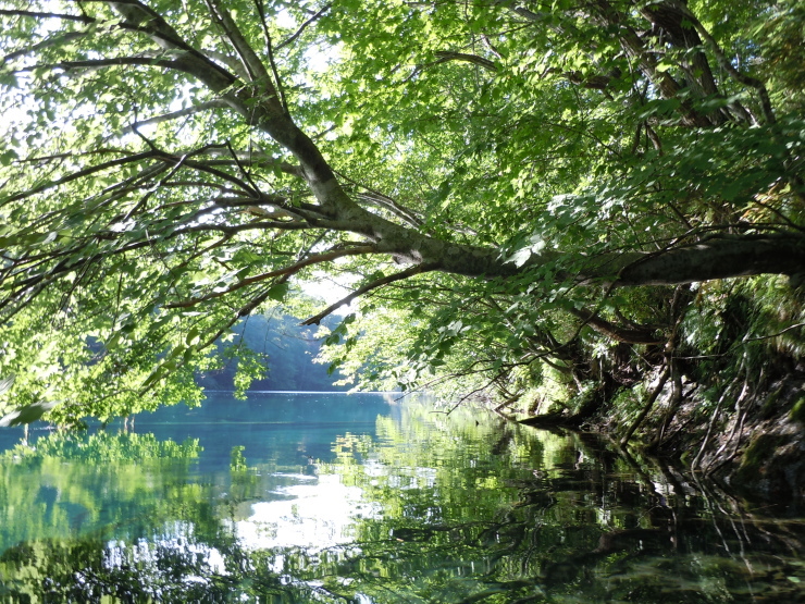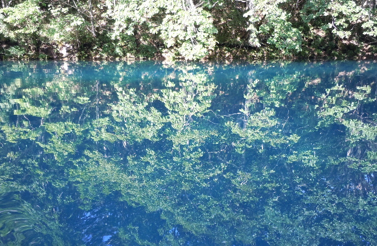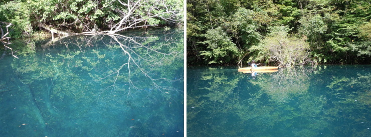 | 輝くコバルトブルーの水面に映しだされる木々。なんでしょー、この美しさ! |