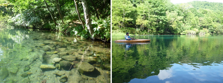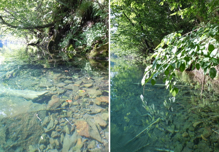 | お薦めは支笏湖よりも千歳川。風が強く支笏湖が荒れ気味の時も、千歳川に入れば別世界のように静かな水面でした。素晴らしい透明度! |