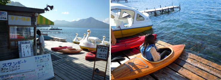 | ちょっと物足りなかったので、より湖面を近くに感じられそうなカヤックに初挑戦。 |
