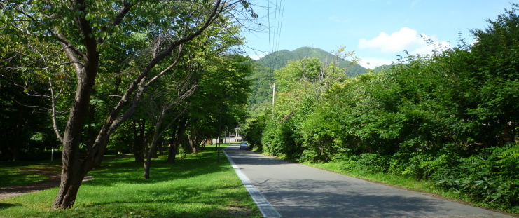| 支笏湖周辺にはまだまだ散策スポットがあります。高台に位置する「野鳥の森」入り口付近。1〜2時間の散策コースです。 |